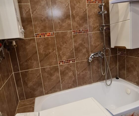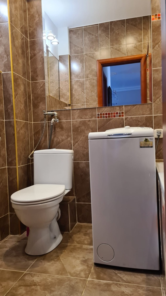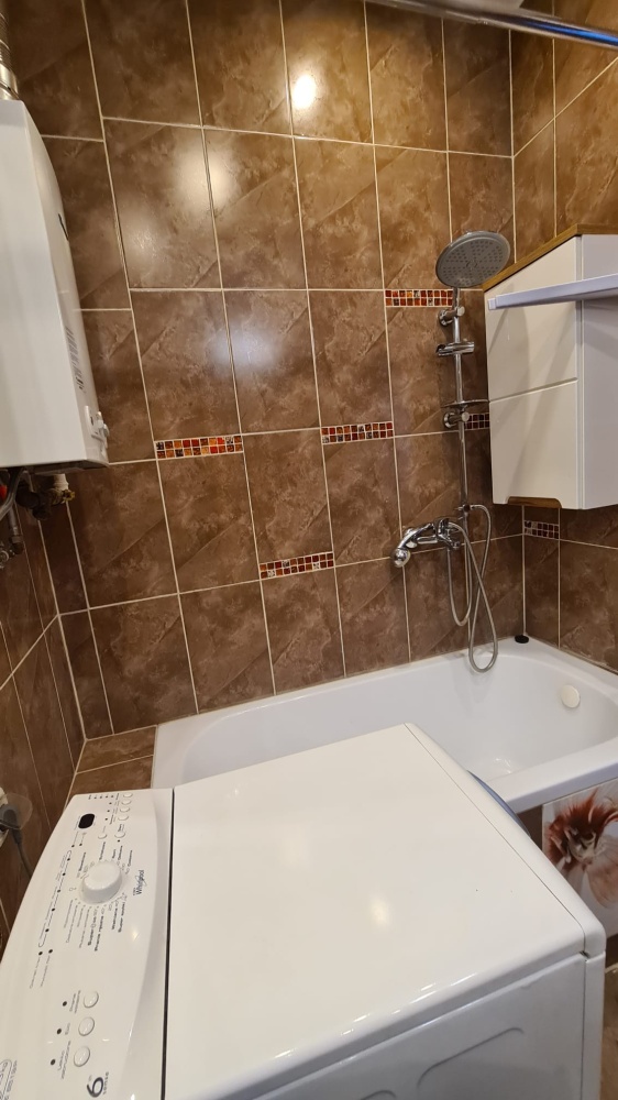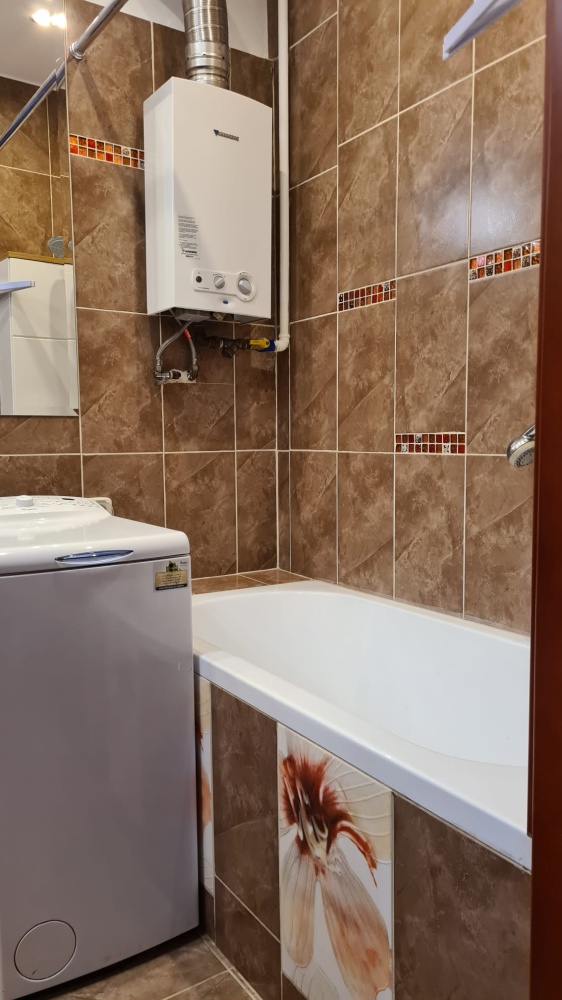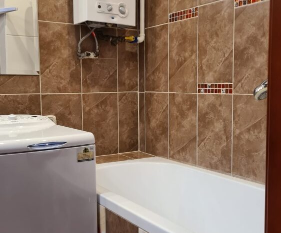 – łazienka z pralką, wanną, umywalką, Junkersem, szafkami;