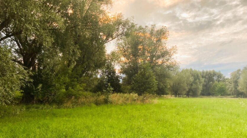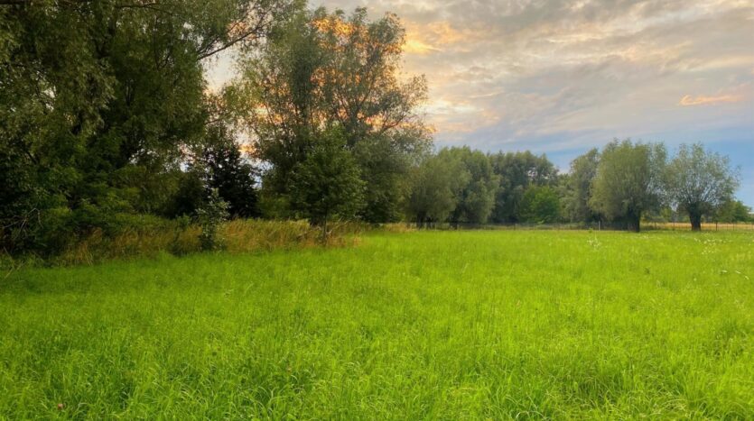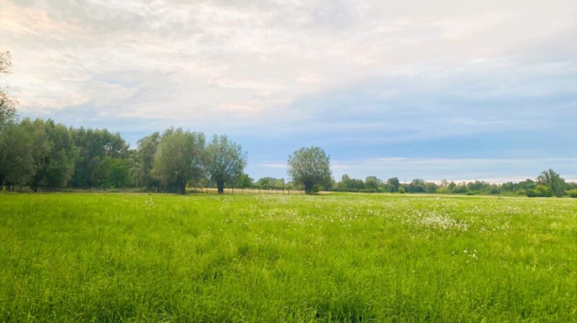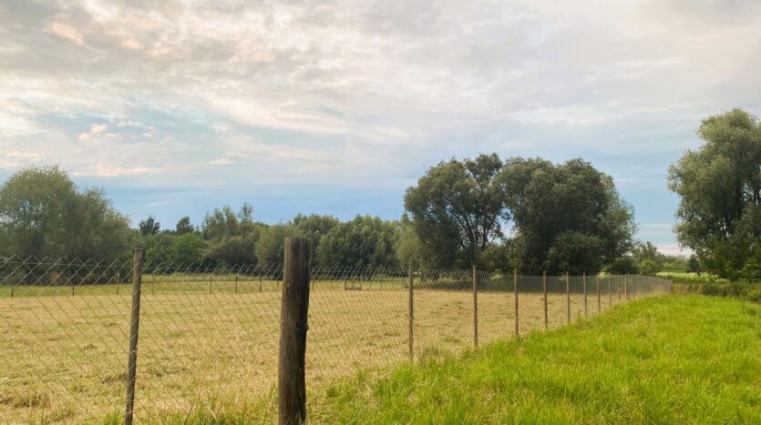 Nieruchomość znajduje się w cichej, spokojnej okolicy, w sąsiedztwie nowo wybudowanych domów oraz pól i łąk. Na horyzoncie widoczny wał przeciwpowodziowy rzeki Wisły.