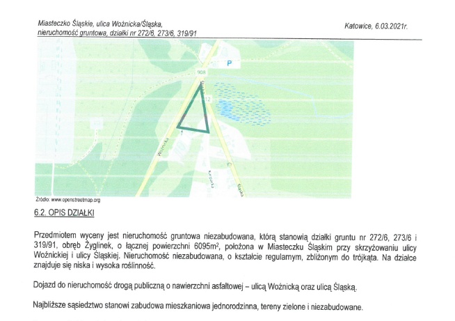 Nieruchomość gruntowa położona w Żyglinku składająca się z działek ewidencyjnych nr 272/6, 273/6, 319/91, o powierzchni 6095 m² objętej księgą wieczystą nr GL1T/00053570/1 cena wywoławcza 41.738,60 zł (słownie: czterdzieści jeden tysięcy siedemset trzydzieści osiem złotych 60/100).