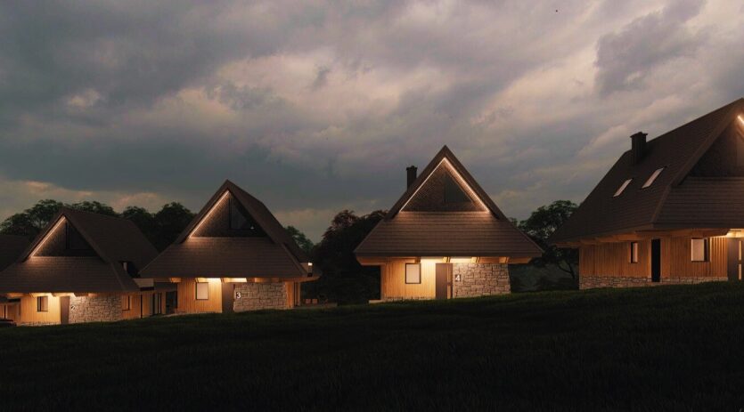 *Domy położone na szczycie Wierchu Rusińskiego, na wysokości ponad 770 m.n.p.m.