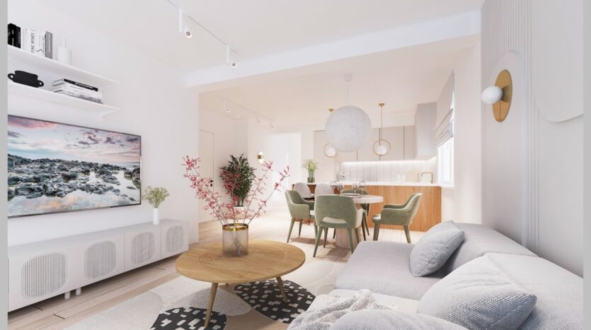 Na sprzedaż mieszkanie dwupoziomowe o powierzchni około 110 mkw, w nowym budynku wielorodzinnym, trzykondygnacyjnym ( zabudowa bliźniacza – dwa mieszkania w segmencie ), położone na pierwszym piętrze + antresola.