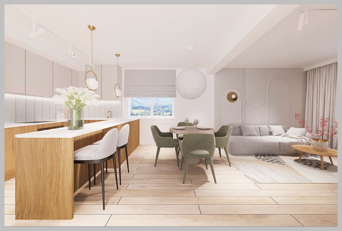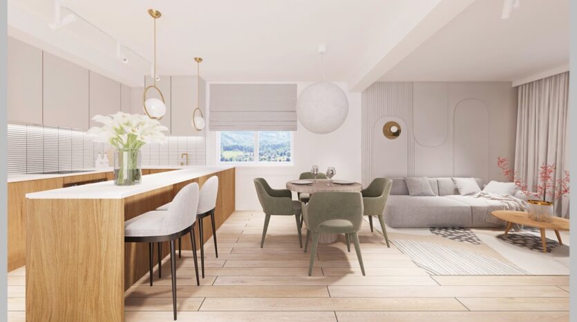 Duża przestrzeń z wyjściem na taras z pięknym widokiem na góry. Możliwość wydzielenia części na łazienkę ( rozprowadzona instalacja ).