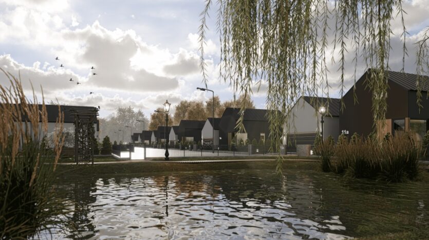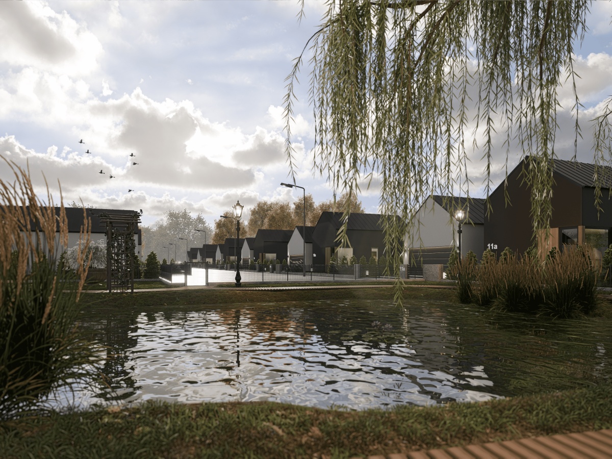 Osiedle wyróżnia się harmonijną architekturą, eleganckim ogrodzeniem oraz prywatnym stawem dostępnym dla mieszkańców. To miejsce, w którym nowoczesność spotyka się z naturą, tworząc idealne warunki do życia dla rodzin z dziećmi i osób szukających spokoju.