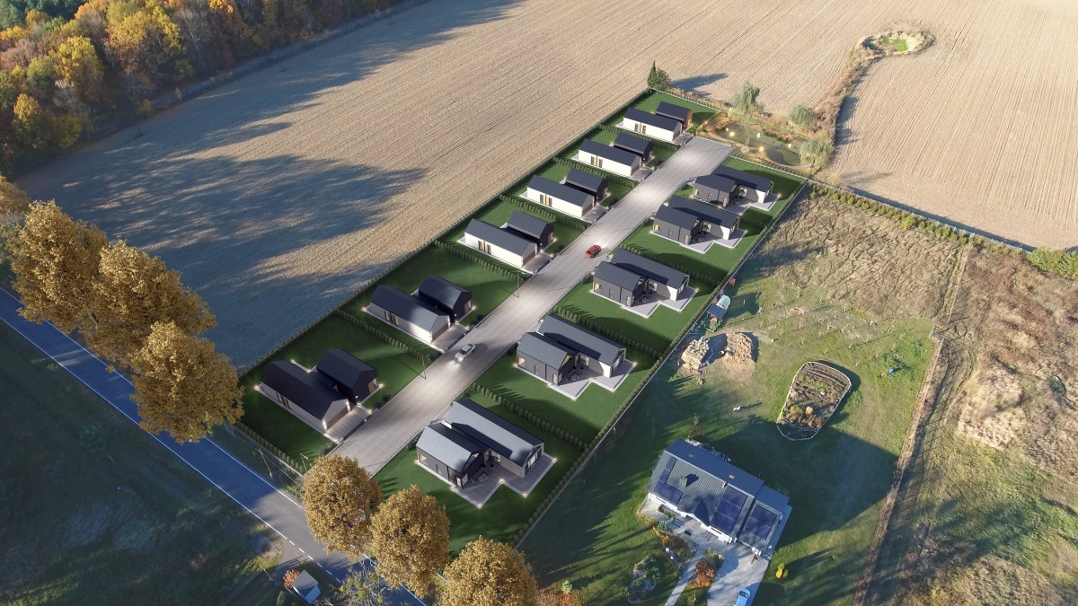 „Domy z Widokiem na Szczęście” to kameralne osiedle 11 nowoczesnych domów jednorodzinnych położonych w sercu Puszczy Bydgoskiej, w miejscowości Leszyce. To idealne miejsce dla osób ceniących ciszę, przestrzeń i bliskość natury – zaledwie 24 km od Bydgoszczy.