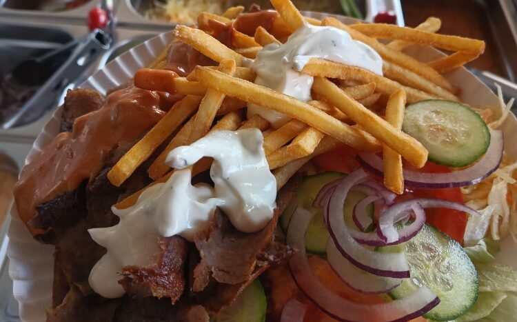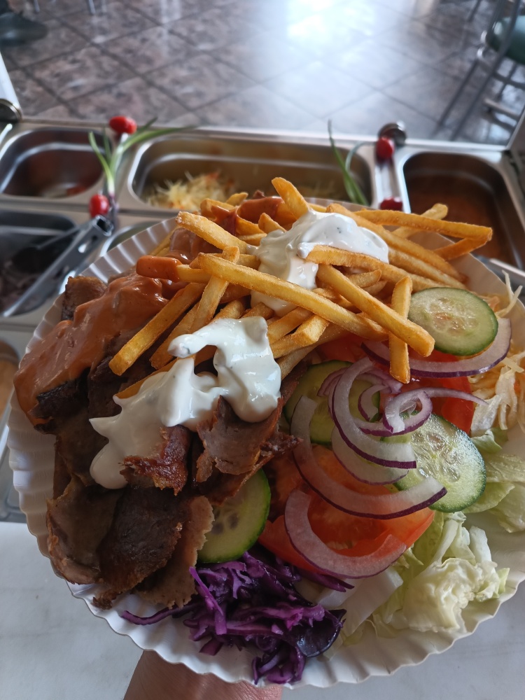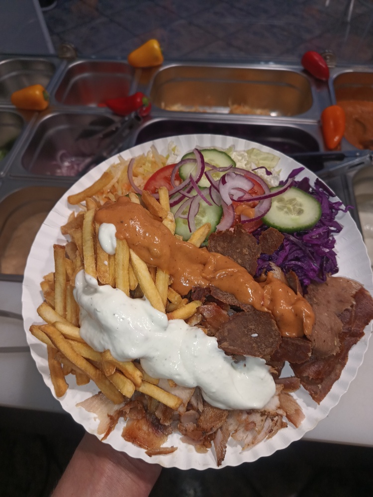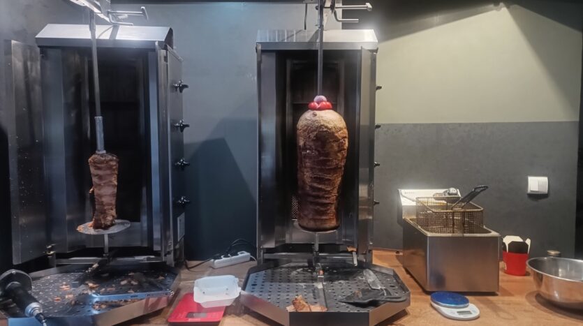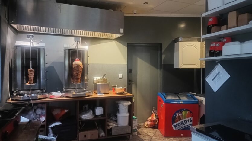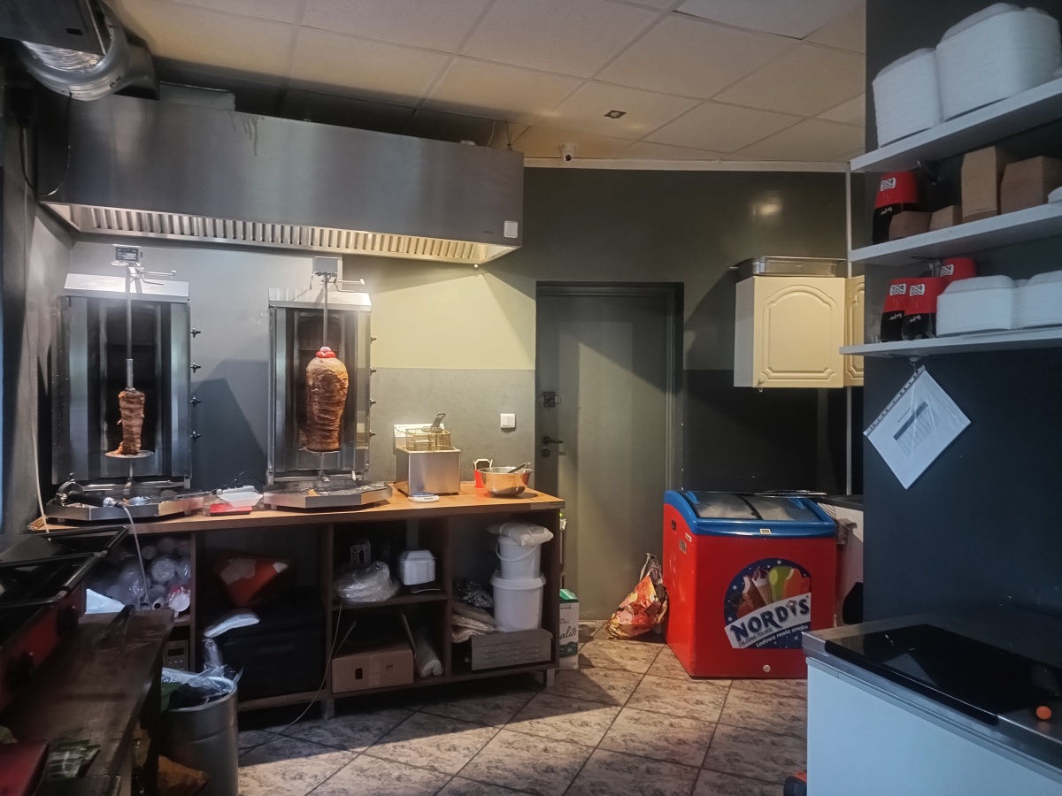 – kuchnia wyposażona w meble, 2x zamrażarka, 1x lodówka, 2x opiekacz gazowy do kebaba, 2x frytkownica, opiekacz do bułek, płyta grillowa, mikrofalówka, piecyk do zapiekanek, 2x nóż elektryczny do kebaba i cały niezbędny drobny sprzęt + zapasy opakowań i towaru;