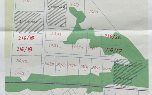 działka budowlana wg. MPZP, grunt oznaczony LsV (wymaga wyłączenia z produkcji leśnej – do 500m2 bez opłat dla budowy domu jedno lub wielorodzinnego), uregulowany stan prawny (księga wieczysta).