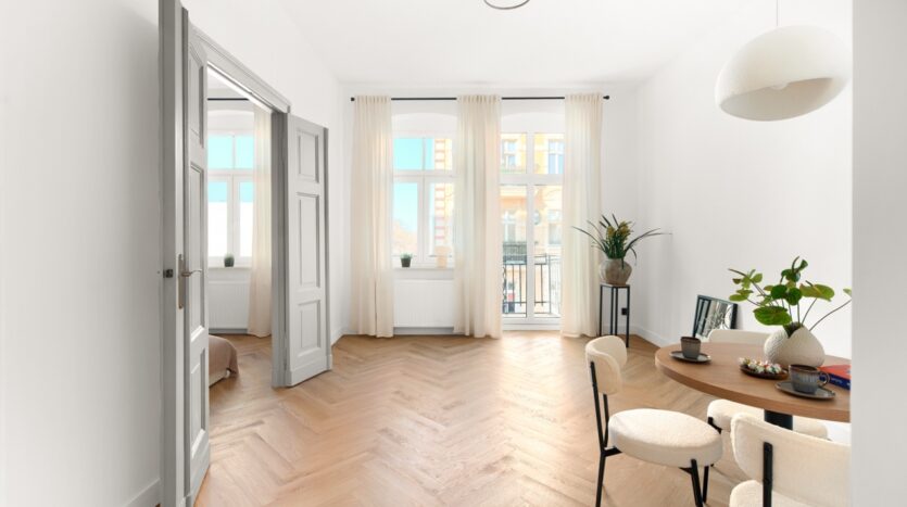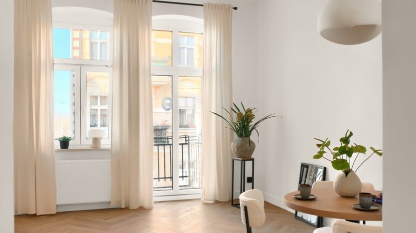 Topowa, historyczna lokalizacja Poznania. Wychodząc z kamienicy w prawo zwiedzimy cały Rynek Śródecki i skorzystamy z wszelkich jego dobrodziejstw w postaci świetnych knajpek, kawiarni czy sklepu. Wychodząc z kamienicy w lewo wchodzimy od razu w najbardziej historyczną część miasta – Ostrów Tumski z katedrą jako jego wizytówką. Z Ostrowa Tumskiego natomiast w kilka minut możemy znaleźć się w okolicach Starego Miasta. Lokalizacja, jest topowa nie tylko ze względu na walory historyczne, czy bliskość centrum, ale również dzięki dostępności do terenów rekreacyjnych. Wychodząc z kamienicy przez podwórze odrazu znajdujemy się na Wartostradzie skąd spacerem, czy też rowerem w moment możemy znaleźć się w centrum, czy też nad jeziorem maltańskim, a także skorzystać z dobrodziejstw całej nadwarciańskiej ścieżki rowerowej.