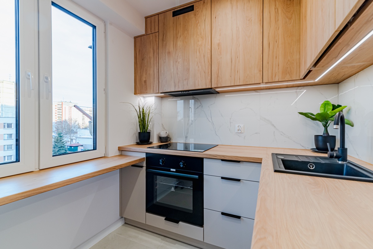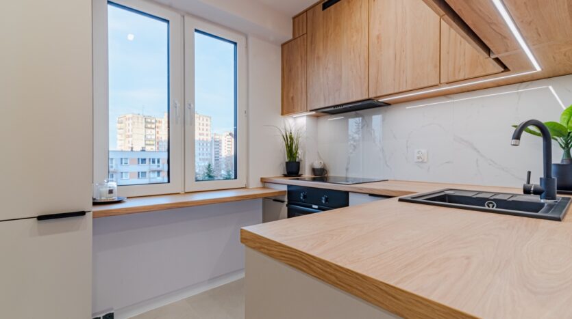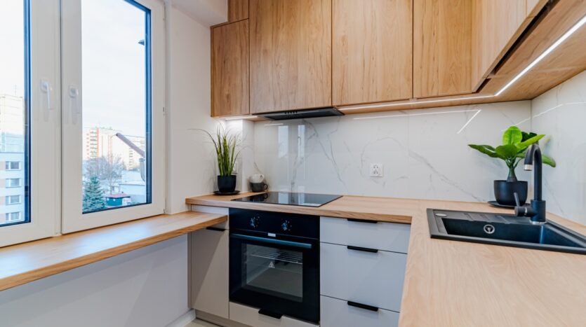– Nowe sprzęty AGD (lodówka, płyta indukcyjna, okap, piekarnik, zmywarka)