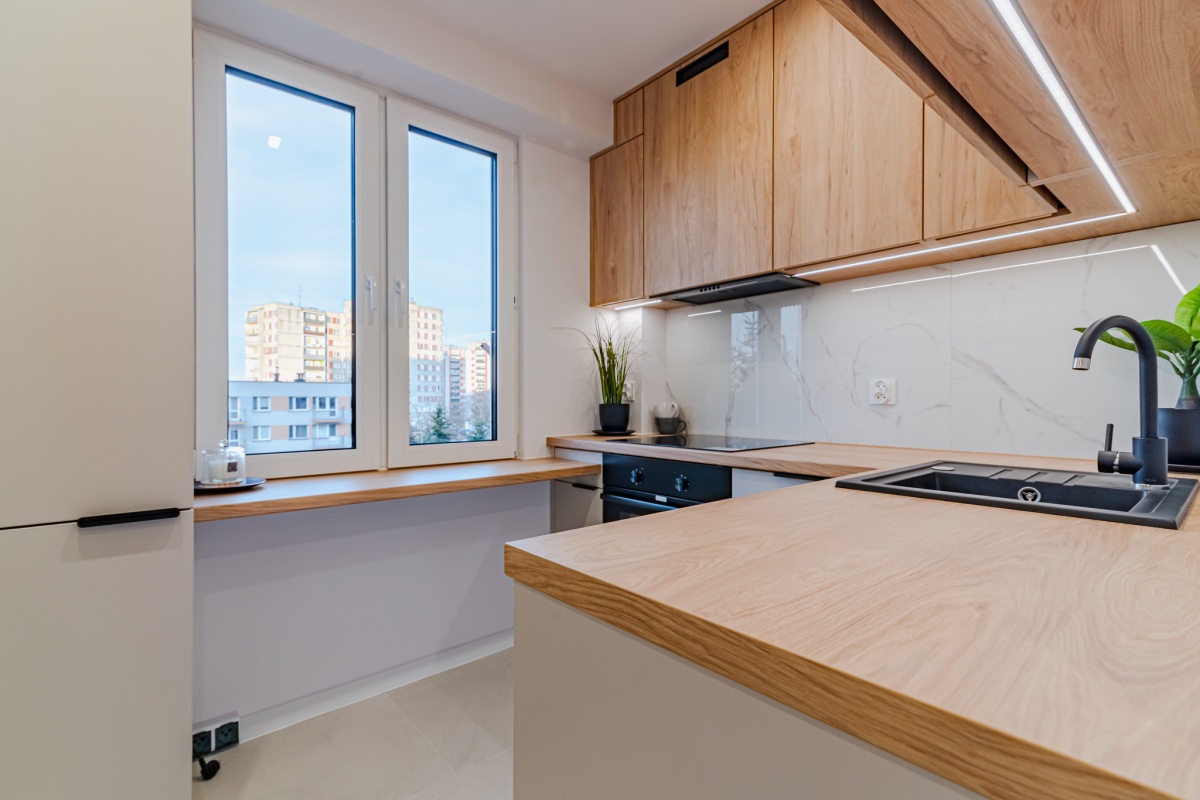 – Nowe meble na wymiar od stolarza (kuchnia, 2 szafy w przedpokoju, szafka z umywalką w łazience)