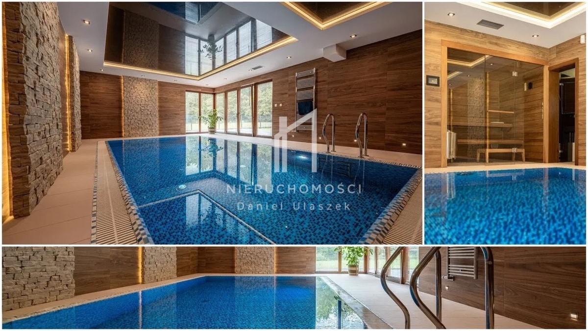 Wyjątkowym elementem posiadłości jest strefa relaksu z basenem, sauną oraz dedykowaną przestrzenią wypoczynkową.