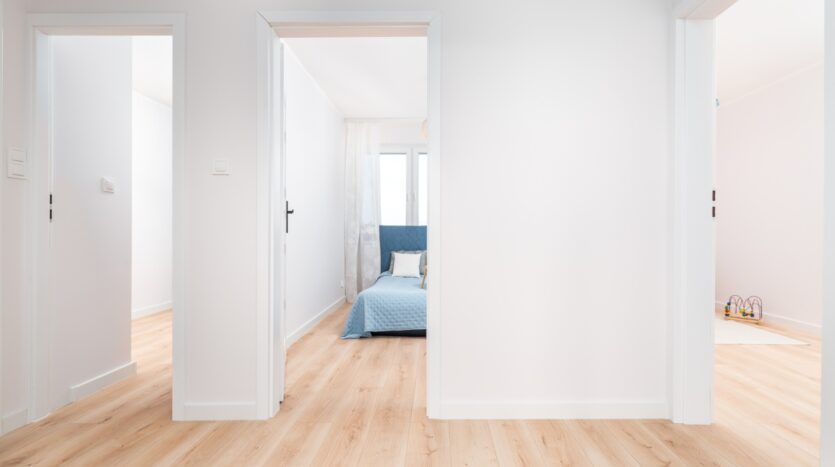 • Pokoje: 4 pokoje (3 sypialnie i salon z aneksem kuchennym – zabudowa od stolarza)