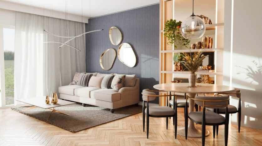 – przestronny salon z aneksem kuchennym
