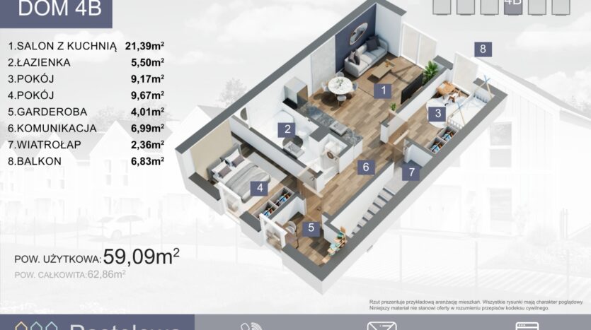 – powierzchnia użytkowa 59,09 m2