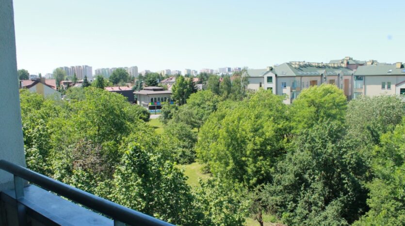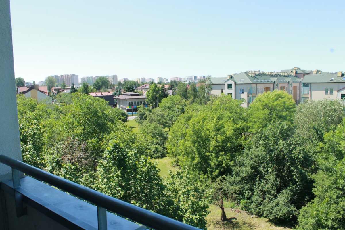 Mieszkanie jasne i słoneczne, okna wychodzą na południowy zachód. Za oknami dużo zieleni i nieprzesłonięty widok.