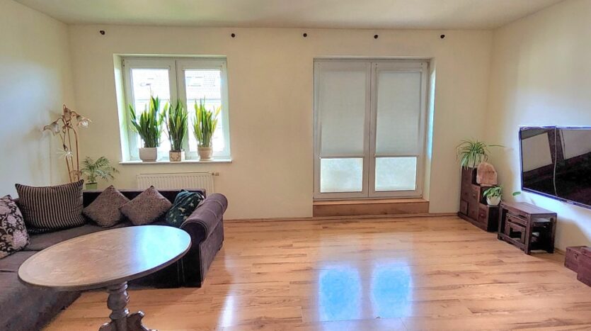 trzy ustawne pokoje: dwa większe (ok. 17 m² każdy) oraz jeden mniejszy (ok. 8 m²) – idealne jako sypialnie, pokoje dziecięce lub gabinet,