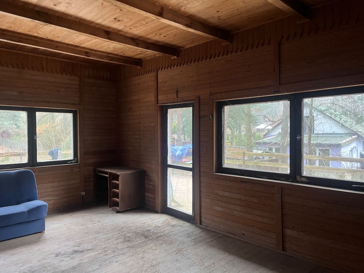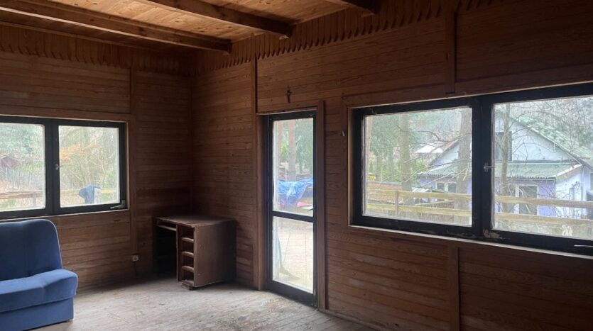 Ładnie położona, cicha działka letniskowa z możliwością posadowienia domu całorocznego w miejscowości Radachówka (gmina Kołbiel). Dojazd z Warszawy nową trasą S17 w ciągu 30 minut. Ogólnodostępna plaża nad rzeką Świder jest w odległości 10-12 minut piechotą od działki. Działka zabudowana niewykończonym od kilkunastu lat domkiem letniskowym o powierzchni ok. 60m2 + piwnica. Domek jest murowany, podpiwniczony z dachem krytym blacho-dachówką ale wymaga sporych nakładów, w tym ocieplenia, wymiany drzwi i okien oraz wykończenia (uwaga: domek jest do kapitalnego remontu lub rozbiórki w zależności od pomysłu i potrzeb nabywcy i na dziś nie przedstawia istotnej wartości; podana cena ofertowa odzwierciedla głównie wartość działki). Alternatywnie, domek można rozebrać pozostawiając piwnicę oraz fundamenty i posadowić w tym miejscu inny dom/ garaż / wiatę, itp. Miejscowy planu zagospodarowania przestrzennego dopuszcza budowę domu całorocznego. Ostatnie zdjęcie to wyciąg z MPZP dla obszaru, na którym znajduje się sprzedawana działka, natomiast zdjęcie przedostatnie to ostateczny wygląd i wjazd na działkę, który czeka jedynie na aktualizację w księdze wieczystej.
