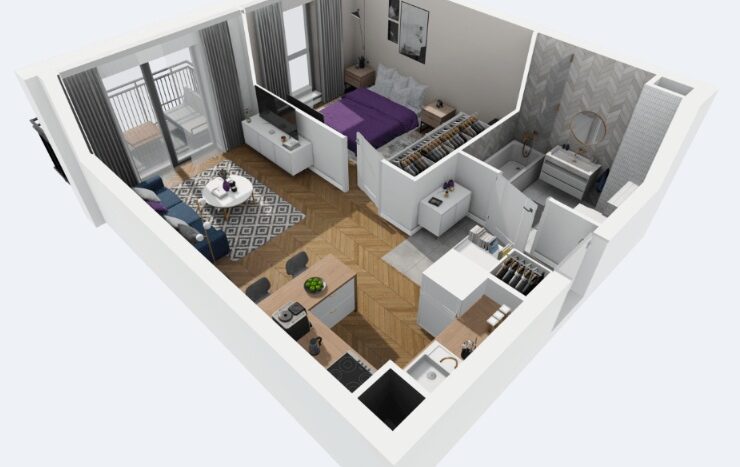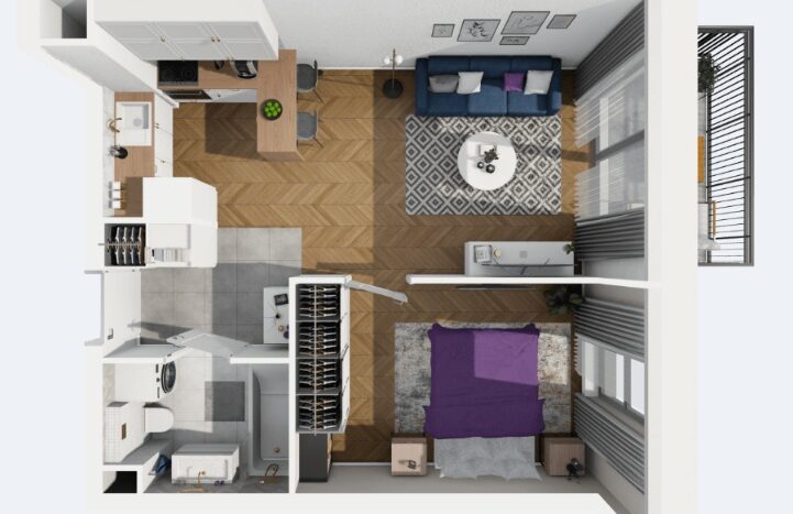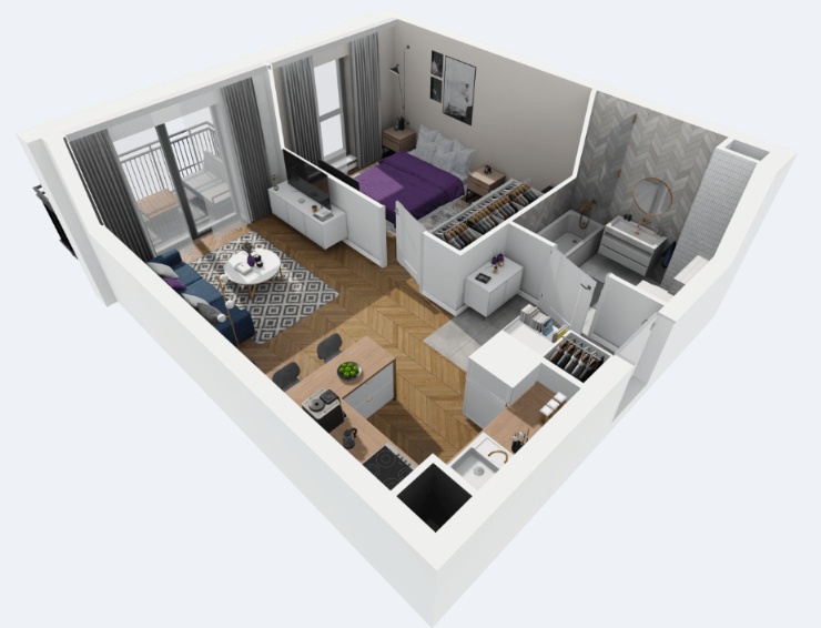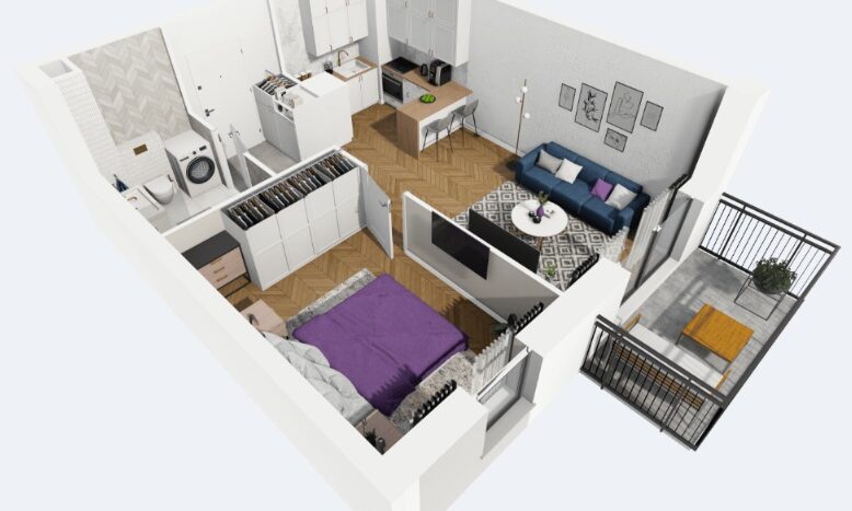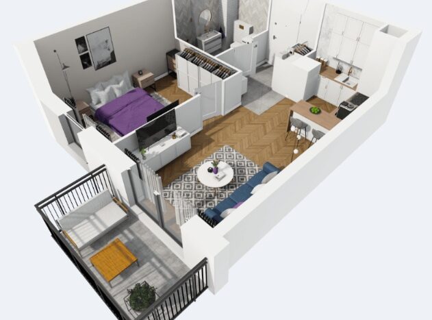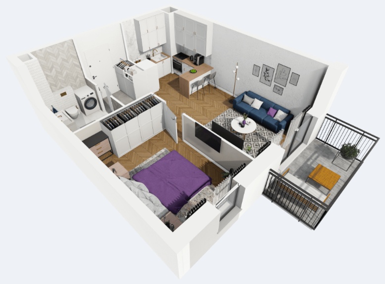 – Funkcjonalny układ: salon z aneksem kuchennym, sypialnia, łazienka, przedpokój,