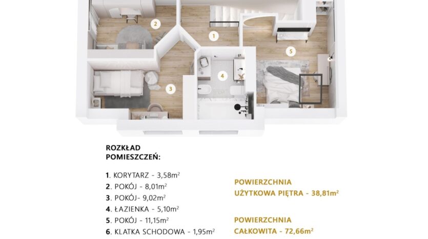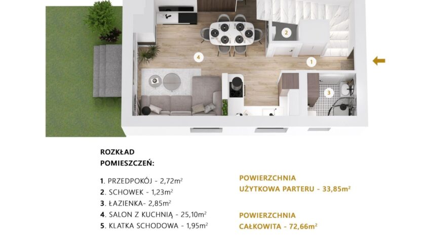 Nieruchomość o powierzchni 72,66m2 parter i piętro + dodatkowo 15m2 strych