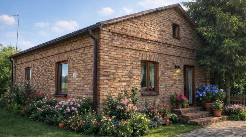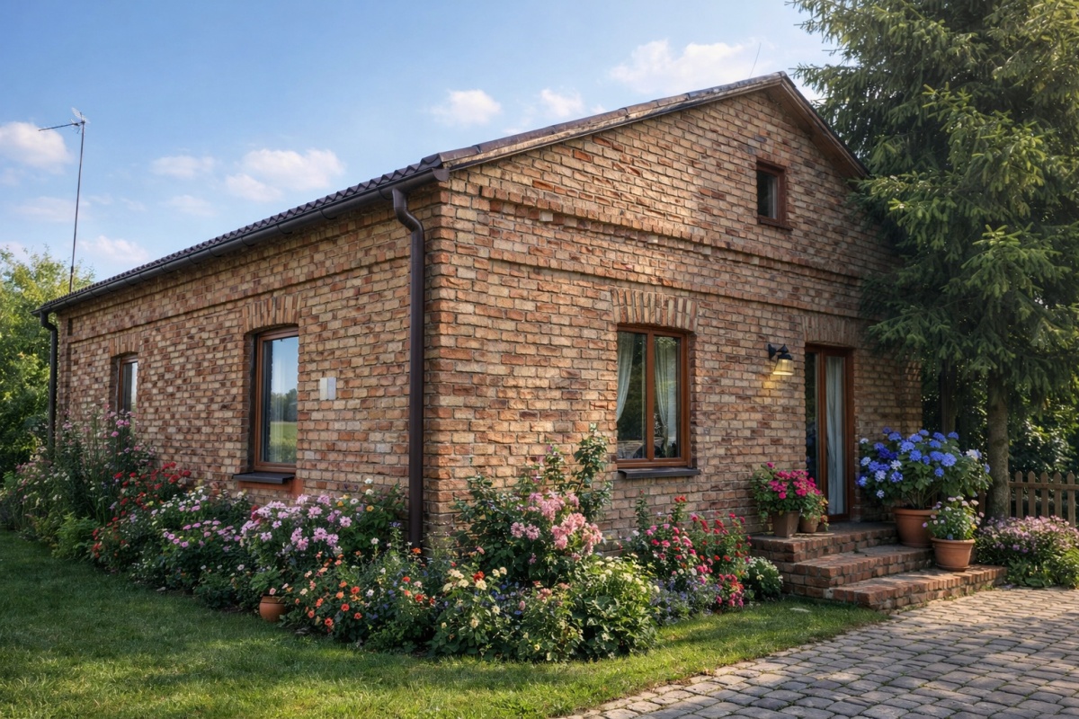 Budynek mieszkalny nr 4 – powierzchnia ok. 82 m², murowany, parterowy z możliwością adaptacji strychu, Okna PCV, ściany zewnętrzne dwuwarstwowe, Ogrzewanie: piec tradycyjny