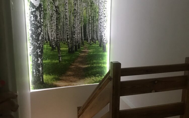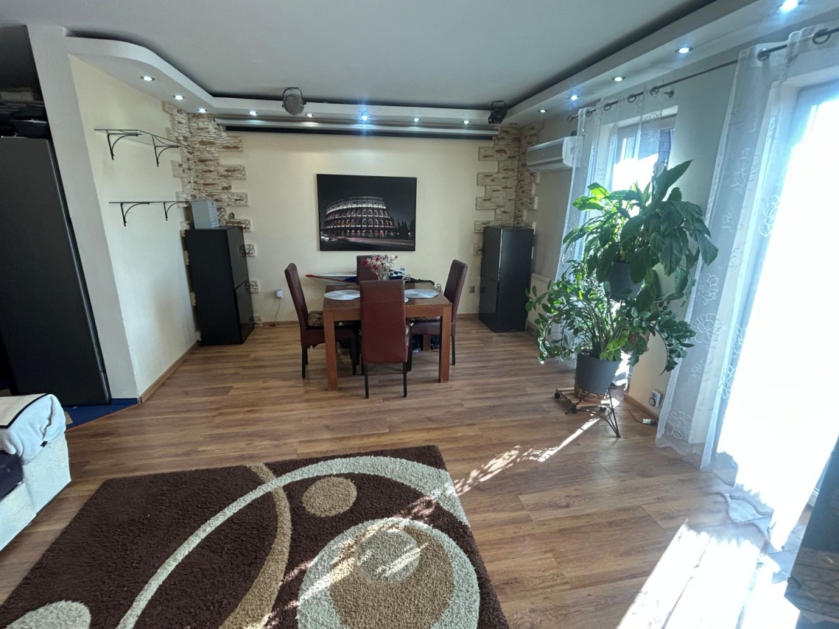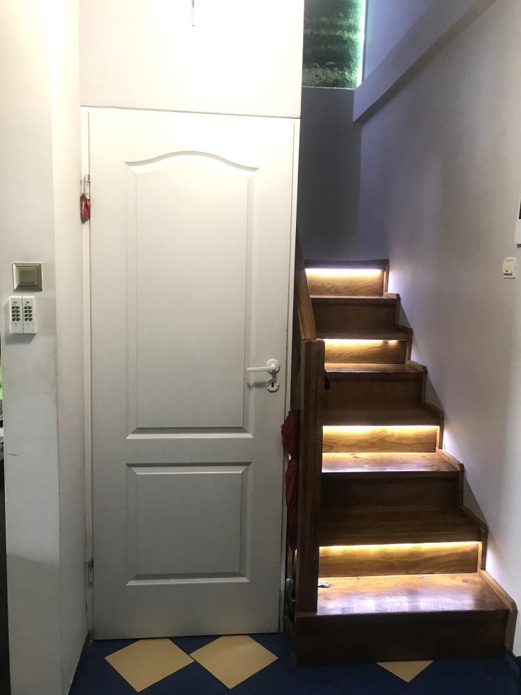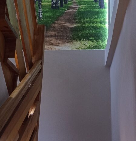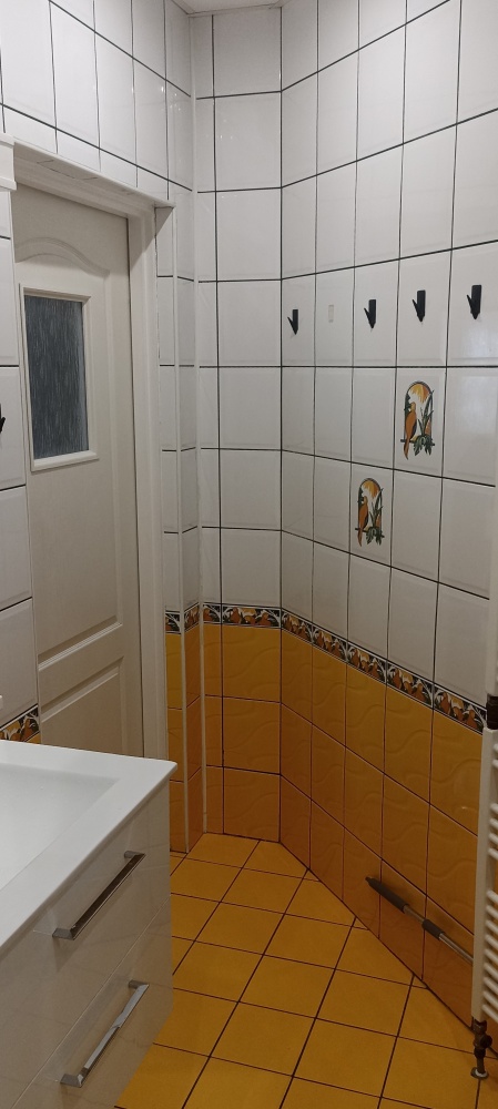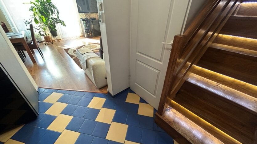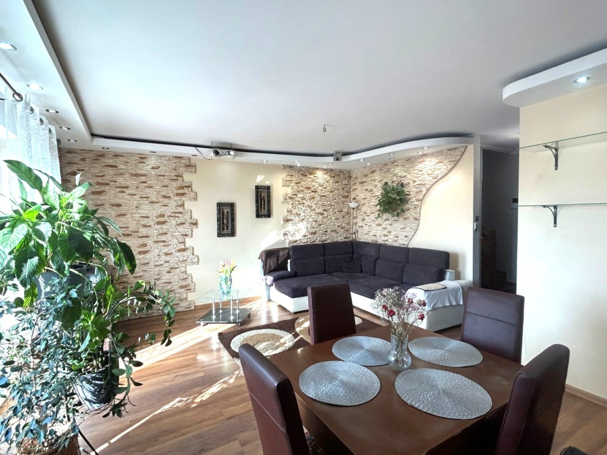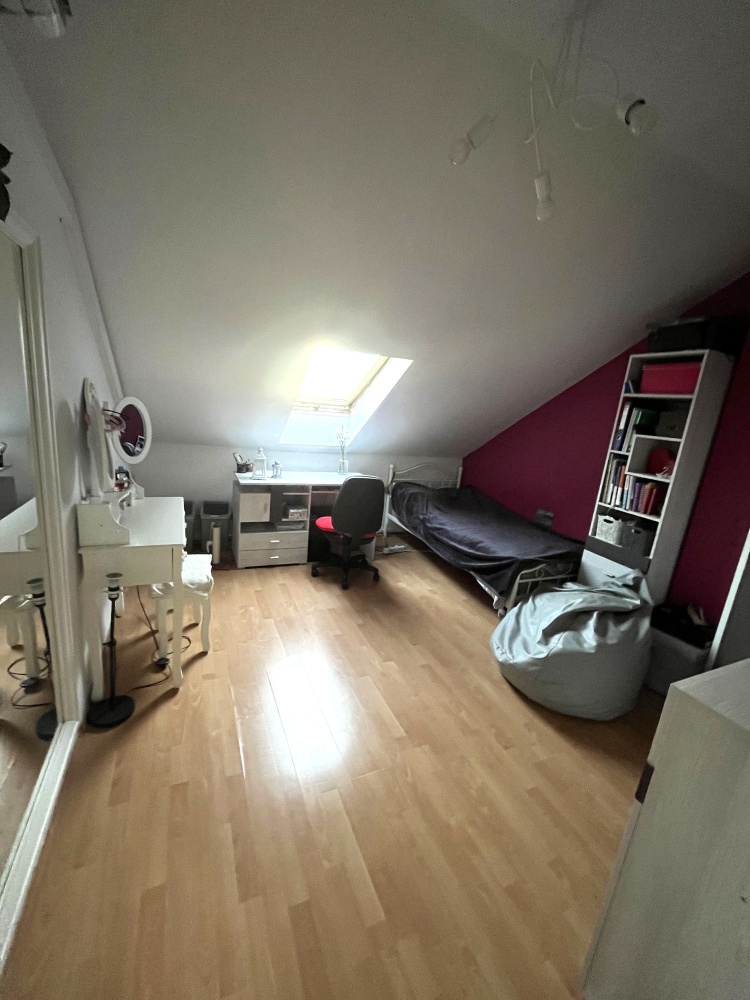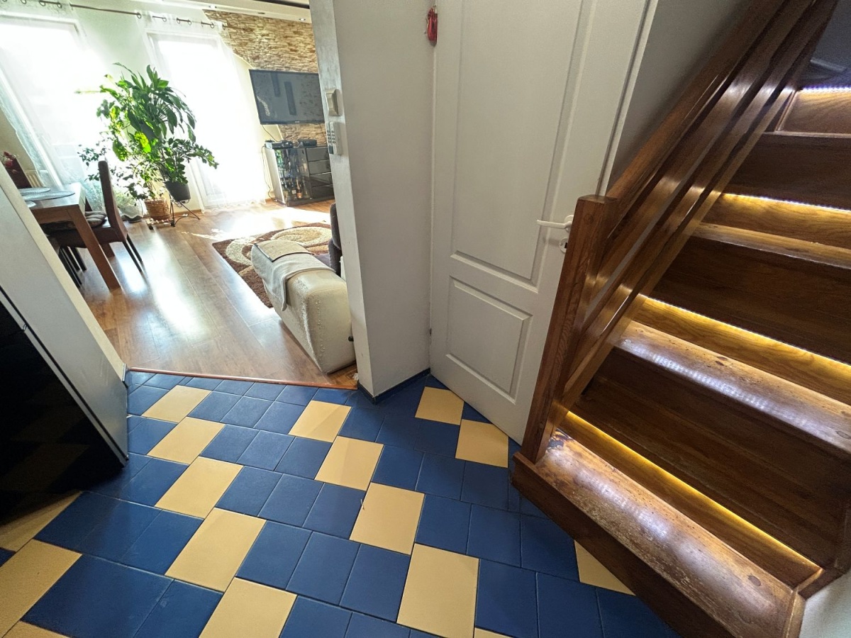 Na dole jest duży salon z aneksem kuchennym (34m2), oraz schowek pod schodami (4m2). Na górze do dyspozycji są dwa pokoje (12 i 15m2) oraz łazienka (ok 5m2). Okna w salonie zostały wymienione 3 lata temu, a dachowe pół roku temu (trzyszybowe).