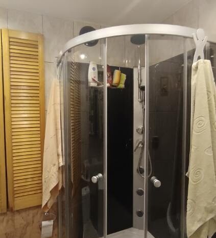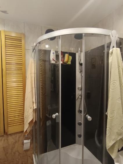 pokój dzienny z kominkiem, salon z wyjściem na balkon (zabudowany), kuchnia, łazienka z prysznicem (hydromasaż).Cena do małej negocjacji.