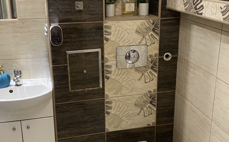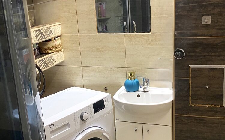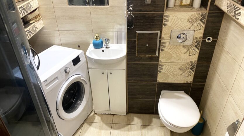 3) Łazienka z WC o powierzchni 2,80m2 w płytkach . Na wyposażeniu prysznic oraz pralka