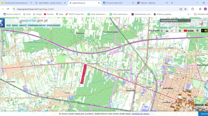 Sprzedam teren inwestycyjny o pow. 7,7574 ha (77.574 m2) w miejscowości Choszczówka Rudzka, gm. Dębe Wielkie. Dziaka położona bezpośrednio przy drodze krajowej DK92 z dostępem do wszystkich mediów – sieć elektroenergetyczna, sieć wodociągowa, sieć gazowa, sieć telekomunikacyjna – w granicy działki od strony DK92.