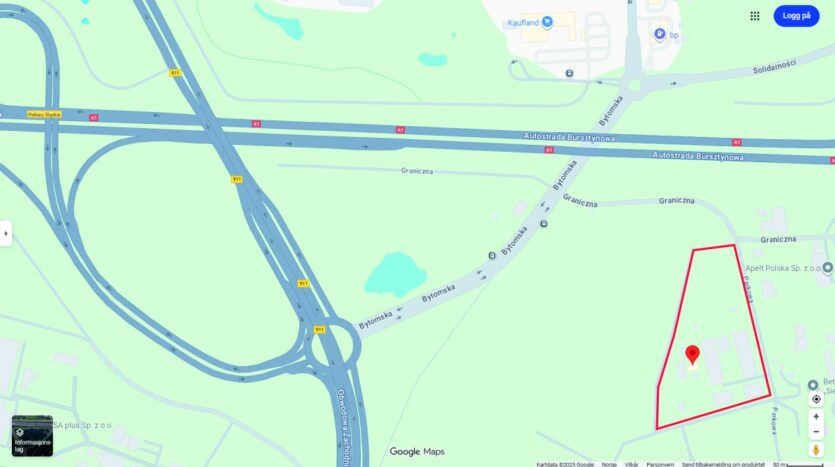 – wjazd na teren bezpośrednio z drogi asfaltowej (teren zlokalizowany jest bezpośrednio przy zjeździe z autostrady A1 i przyszłej drogi S11).