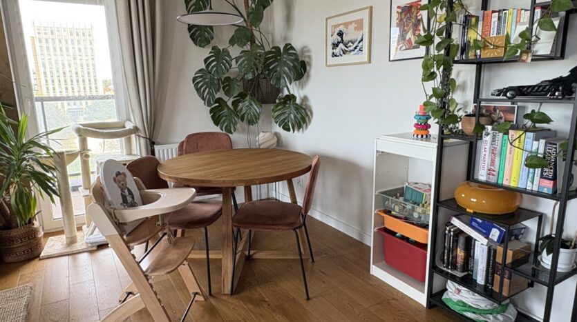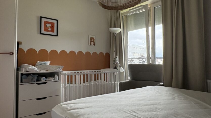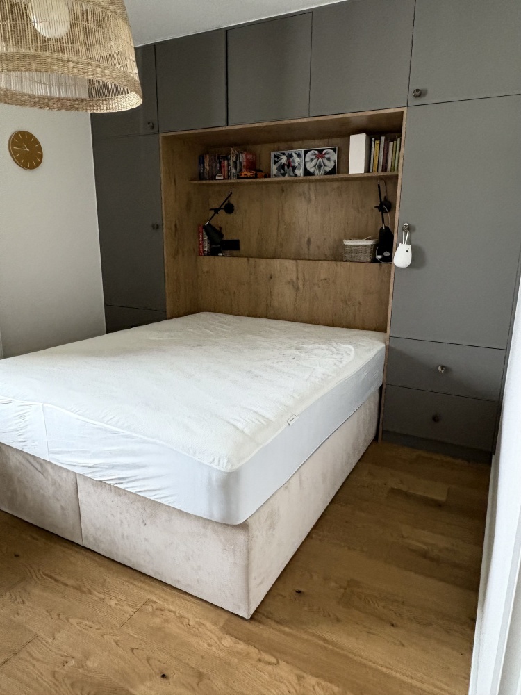 Mieszkanie jest w pełni umeblowane i wyposażone w sprzęt AGD. Wykończone w wysokim standardzie – gotowe do zamieszkania. Ekspozycja mieszkania to północ/zachód. W każdym pomieszczeniu trwała zabudowa – kuchnia pod wymiar, szafy wbudowane w przedpokoju i mniejszym pokoju, zabudowa sypialni oraz łazienki.