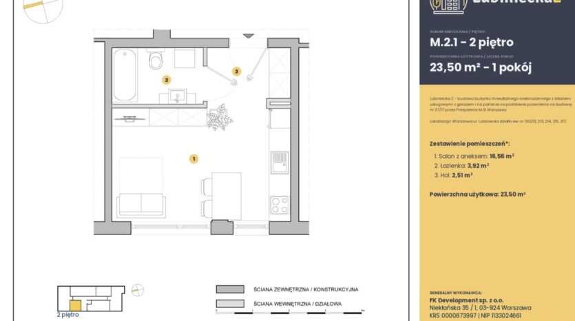 Na sprzedaż kompaktowe, ale bardzo ustawne mieszkanie, położonego w nowym, kameralnym budynku na warszawskiej Pradze Południe. Idealnie rozplanowany rozkład — mimo małego metrażu mieści się przestronna łazienka, kuchnia, miejsce na szafy oraz salon wydzielony od kuchni strefą jadalni. Idealnie mieszkanie na start lub pod wynajem! Mieszkanie jest wyjątkowe widne — jest płytkie (nie jest długim, ciemnym wagonem jak większość kawalerek) a zewnętrzna ściana to w większości okna!