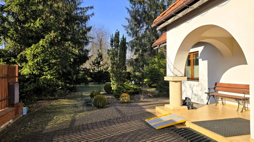 Dom pod wieloma względami jest znakomicie położony: cisza, spokój, dużo zieleni, dostęp do wygodnej komunikacji (PKP, autobus) i oczywiście zróżnicowana i bogata infrastruktura na wyciągnięcie ręki. Wybierając to miejsce możemy mieć pewność, że nie zabraknie w okolicy niczego co potrzebne jest do wygodnego funkcjonowania.