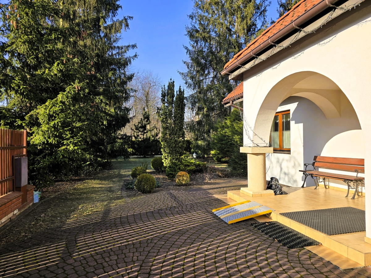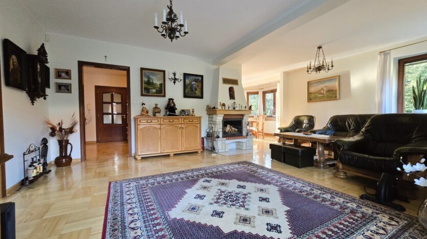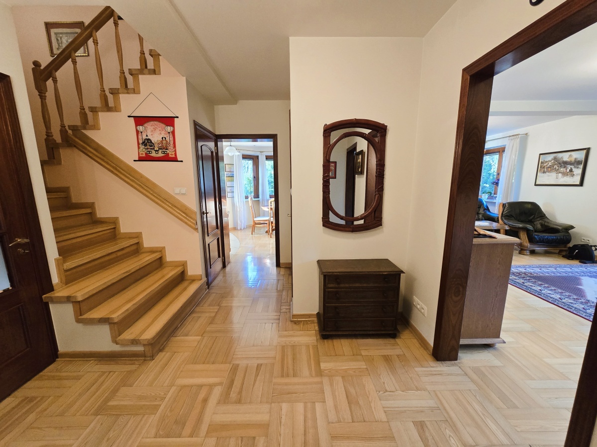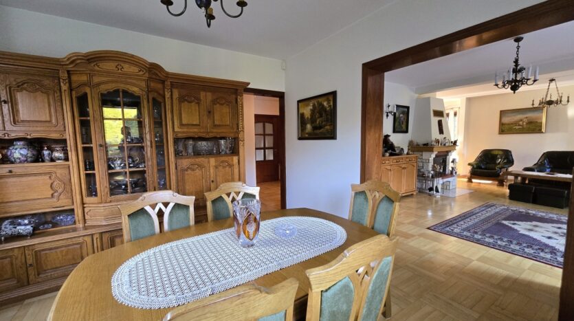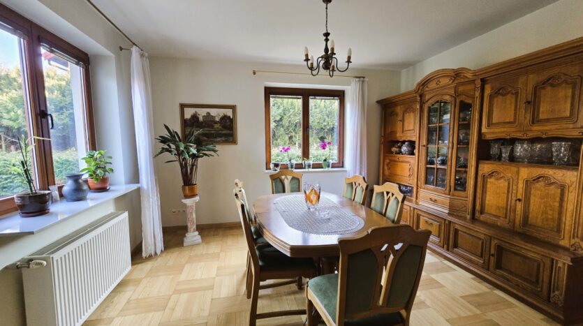 Dom utrzymany jest w świetnej kondycji. Podłogi dębowe zachowane są niemalże w idealnym stanie, kuchnia w drewnianej zabudowie z włoskiej akacji wciąż ma swój urok, drewniane okna działają bez zarzutu. Oferta obejmuje również kompletne umeblowanie i wyposażenie (w tym również dodatkowa duża zamrażalka, kosiarka, wyposażony przydomowy warsztat w garażu, telewizor).