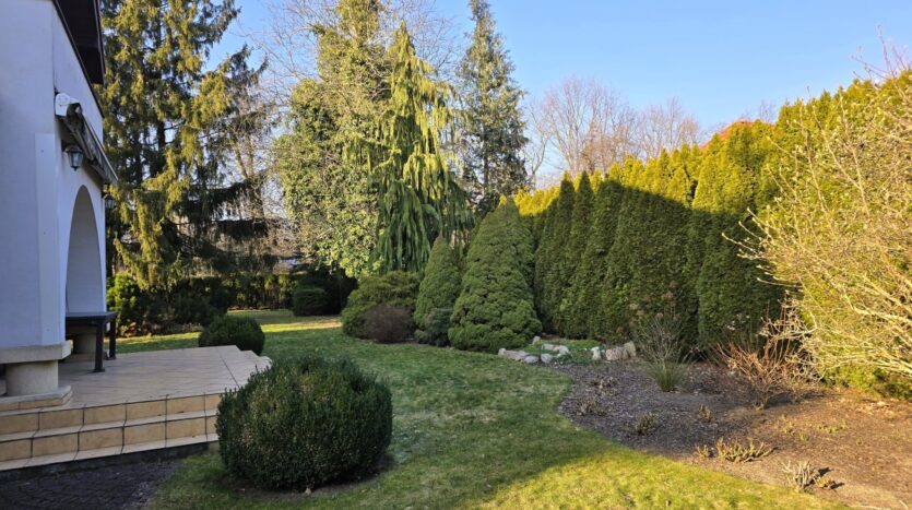 Działka ma optymalną wielkość i jest bardzo ustawna (30,5m x 38,5m) co gwarantuje nam przyjemną przestrzeń. Pomimo posadowionego okazałego domu pozostał do użytku wspaniały ogród, bardzo przemyślanie zagospodarowany, częściowo zadrzewiony, z licznymi nasadzeniami, kompostownikiem i wygodnie usytuowaną drewutnią.
