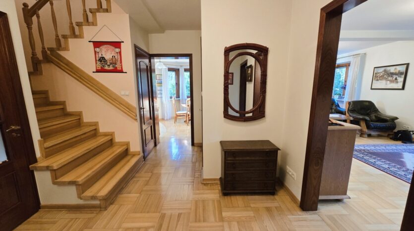 Prezentuję do sprzedaży niezwykle atrakcyjną nieruchomość: wspaniały dom wolnostojący o powierzchni całkowitej 232 m2 (powierzchnia użytkowa domu wraz z garażem jednostanowiskowym to 192,5 m2) położony w znakomitej lokalizacji zarówno pod kątem komfortu użytkowania (cisza, zieleń, dostęp do pełnej infrastruktury) jak i pod kątem komunikacyjnym (stacja PKP Warszawa Choszczówka w odległości 1300 m, przystanek autobusowy na tej samej ulicy w odległości kilkudziesięciu metrów, dojazd samochodem do Centrum Warszawy w około 30 min). Ten niezwykle solidny budynek o ciepłych wnętrzach posadowiony jest na pięknej, ustawnej i zagospodarowanej działce o powierzchni 1178 m2 i wymiarach 30,5 m x 38,5 m i posiada dostęp do wszystkich mediów miejskich (prąd, woda, gaz, kanalizacja) jak również własne ujęcie wody ze studni głębinowej.