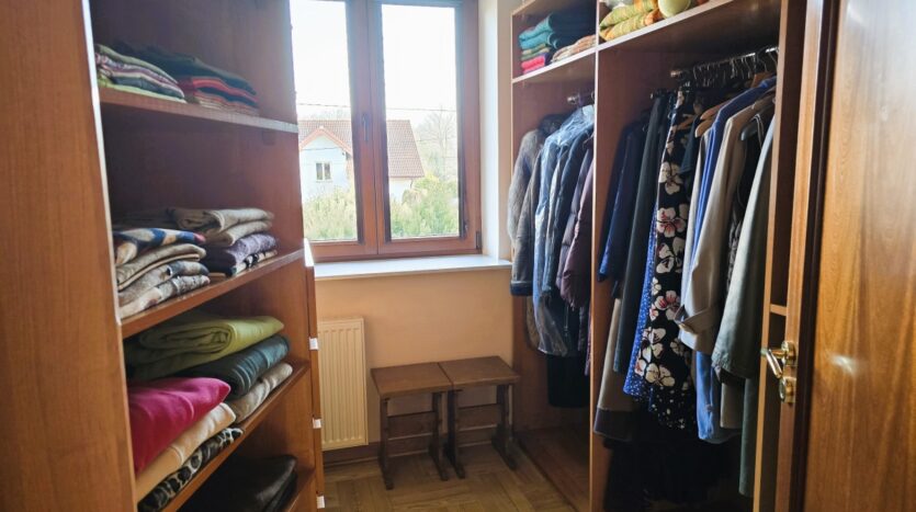 – druga również duża (5,65m2), oddzielna, zamykana garderoba z oknem na piętrze
