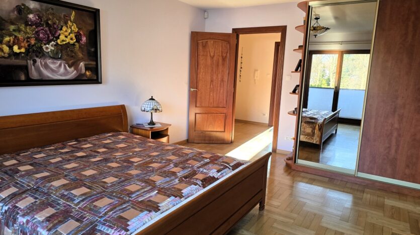 – główna sypialnia z obszerną ponad dziesięciometrową garderobą z oknem (10,30 m2) oraz z wyjściem na balkon