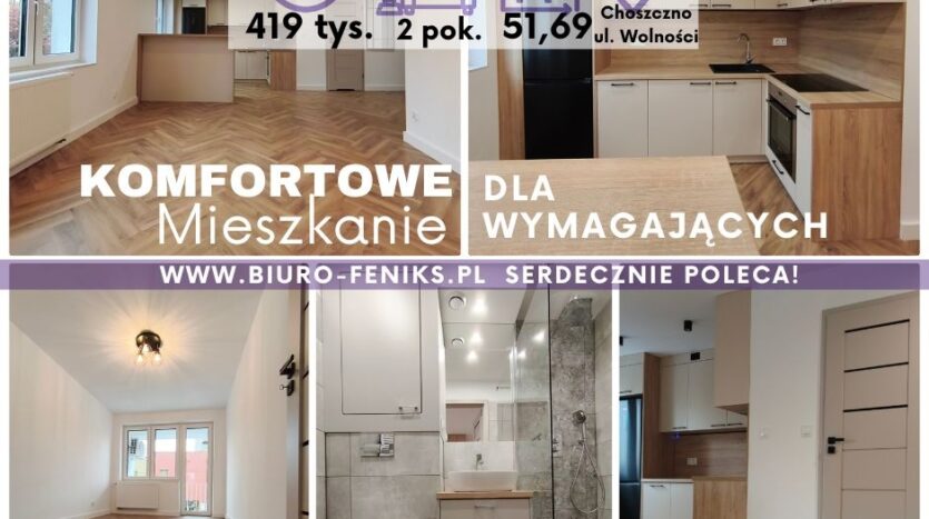 To mieszkanie o powierzchni 51,69 m², usytuowane na 1. piętrze, z balkonem (ok. 2,20 m²) , prywatnym, zamykanym miejscem parkingowym i piwnicą.