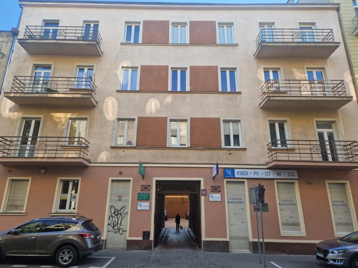 Podwórze jest dostępne dla samochodów mieszkańców. Dodatkowo istnieje możliwość wynajęcia gwarantowanego, zadaszonego miejsca parkingowego w odległości 20 m od budynku (350 zł/miesiąc).