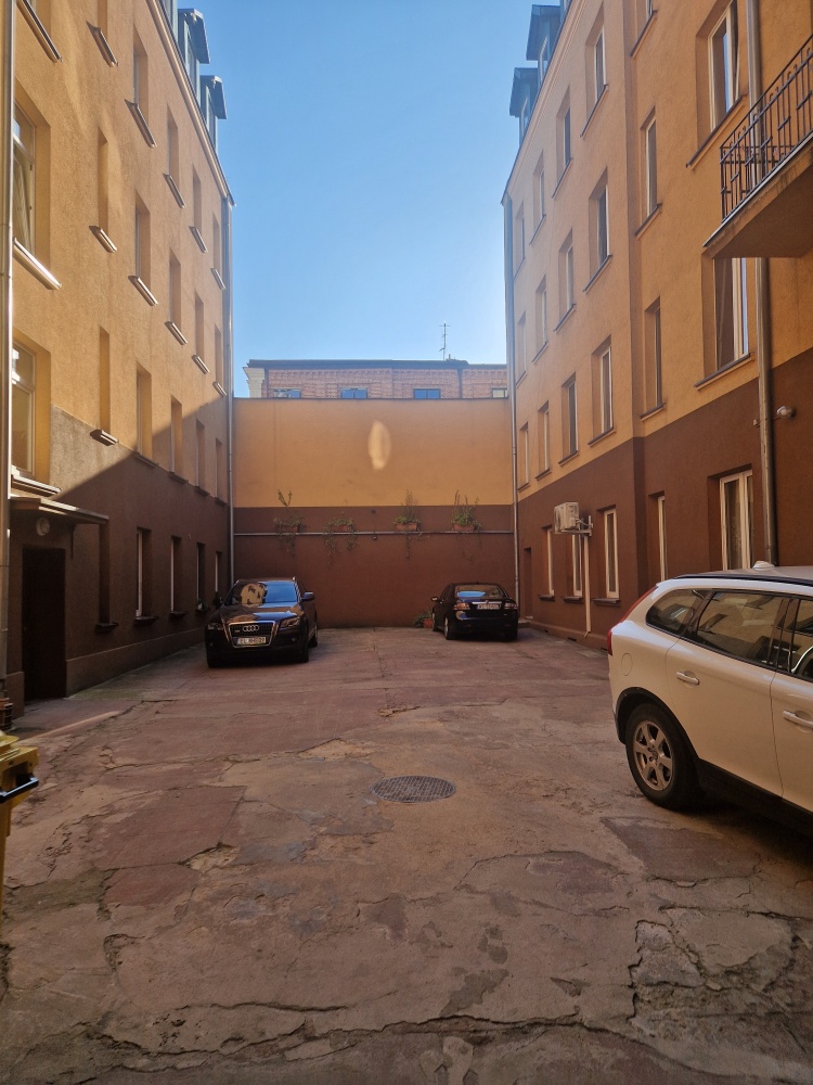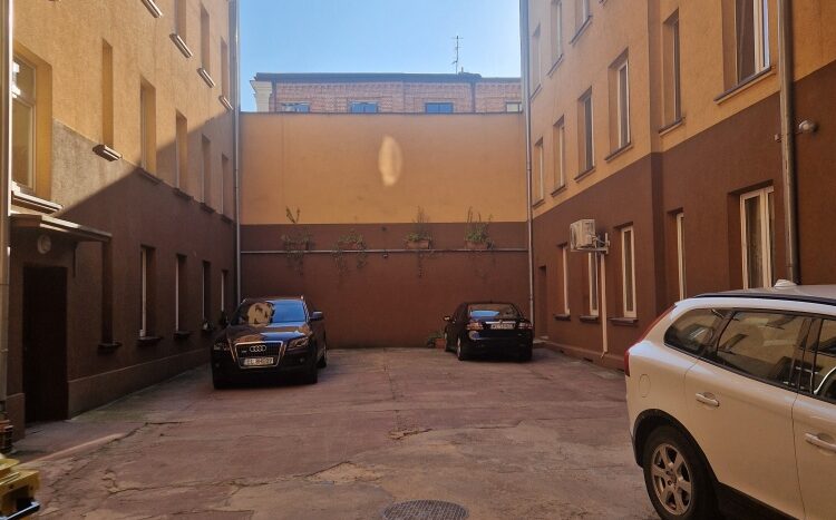The courtyard is accessible for residents’ cars. Additionally, a guaranteed covered parking space is available just 20 meters from the building for 350 PLN/month.