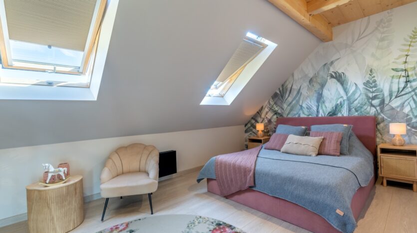 Do nieruchomości przynależy również pokój gościnny z łazienką o pow. 40 m2, do którego prowadzi osobne wejście. Ta opcja daje możliwość wynajmu pokoju turystom.