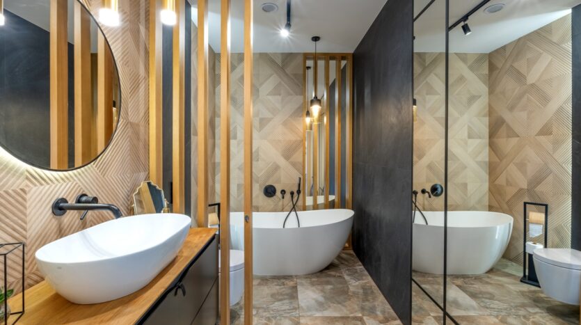 Budynek wyposażony jest w instalację energetyczną, wodociągową (sieć gminna), kanalizację (sieć gminna), własną studnię oraz stację uzdatniania wody. Dom ogrzewany jest pompą ciepła gruntową z ogrzewaniem podłogowym na dole domu oraz grzejnikami na piętrze. Budynek jest klimatyzowany we wszystkich pomieszczeniach urządzeniami firmy Rotenso. Dach domu został pokryty blachodachówką Janosik z Blachotrapez. Stolarka okienna to okna aluminiowe trzyszybowe firmy Schuco z zabezpieczeniem przeciwko promieniowaniu UV. Drzwi wewnętrzne i zewnętrzne wykonane są z drewna. Na podłodze położone są płytki kamienne oraz panele winylowe.