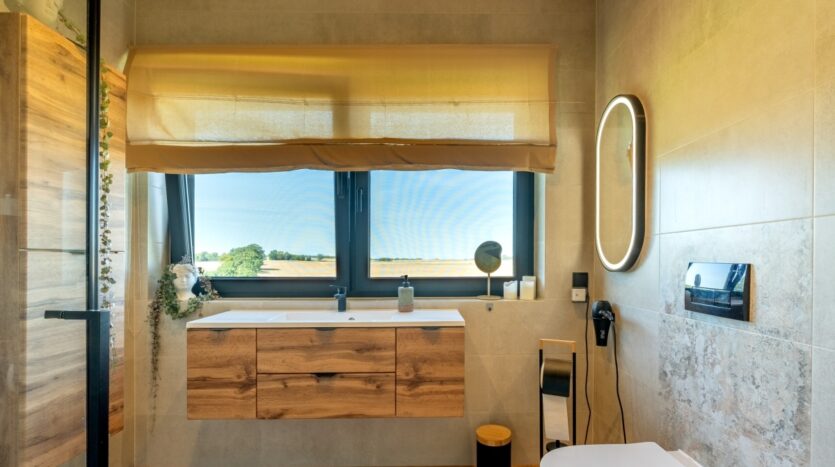 Z każdej strony domu roztaczają się przepiękne widoki na okoliczne jezioro, pola, łąki i lasy Brodnickiego Parku Krajobrazowego umożliwiające korzystanie z różnych form wypoczynku i rekreacji oraz zapewniające atmosferę spokoju i nieograniczonego relaksu. W odległości 200 metrów od domu znajduje się piaszczysta plaża z łagodnym zejściem do jeziora, boisko do siatkówki, miejsce na ognisko, oraz ławki.