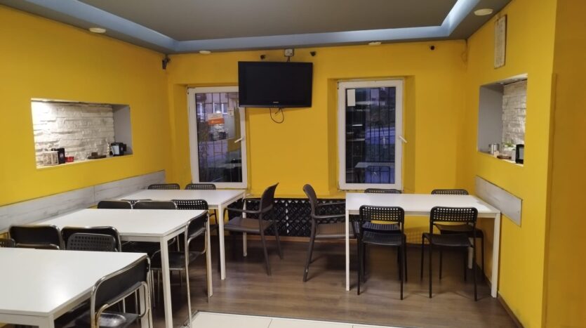Przestronny lokal użytkowy z pełnym dostępem do mediów. Wejście bezpośrednio z chodnika, okna zabezpieczone kratami. Obecnie przystosowany pod gastronomię (kebab) – z dużym zapleczem i możliwością własnej aranżacji.