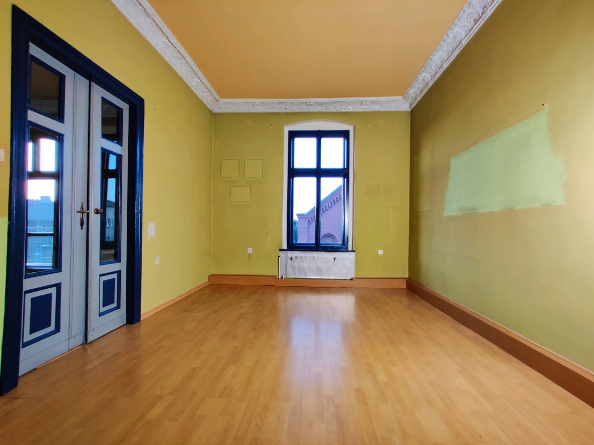 Niezwykły styl starych kamienic ze zdobieniami ściennymi i sufitowymi, stolarka drzwiowa odrestaurowana..