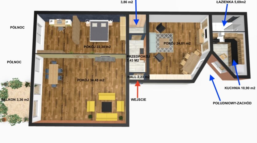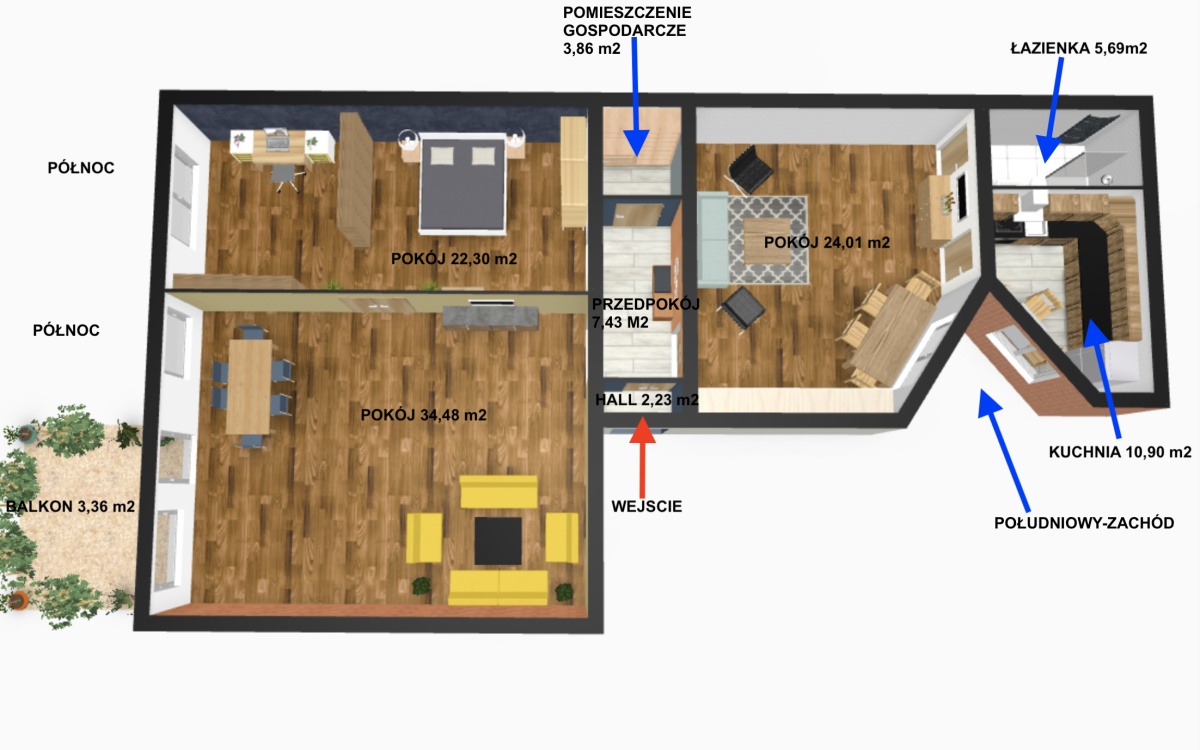 Mieszkanie o powierzchni 110,90 m2 składa się z: