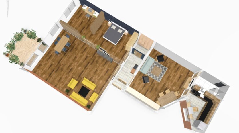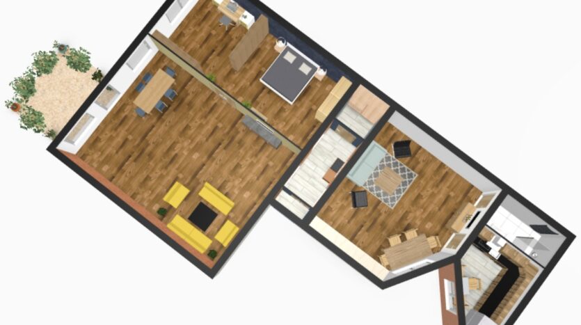 W mieszkaniu można przenieść kuchnie do salonu. Dzięki temu można uzyskać salon z aneksem kuchennym, a dodatkowe pomieszczenie zagospodarować.