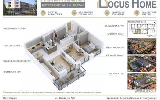 Cena w ogłoszeniu dotyczy mieszkania trzypokojowego na pierwszym piętrze budynku: M 1.4 – 86,66 m² – 849.268,00 zł ZAPRASZAMY na stronę: https://loc ...